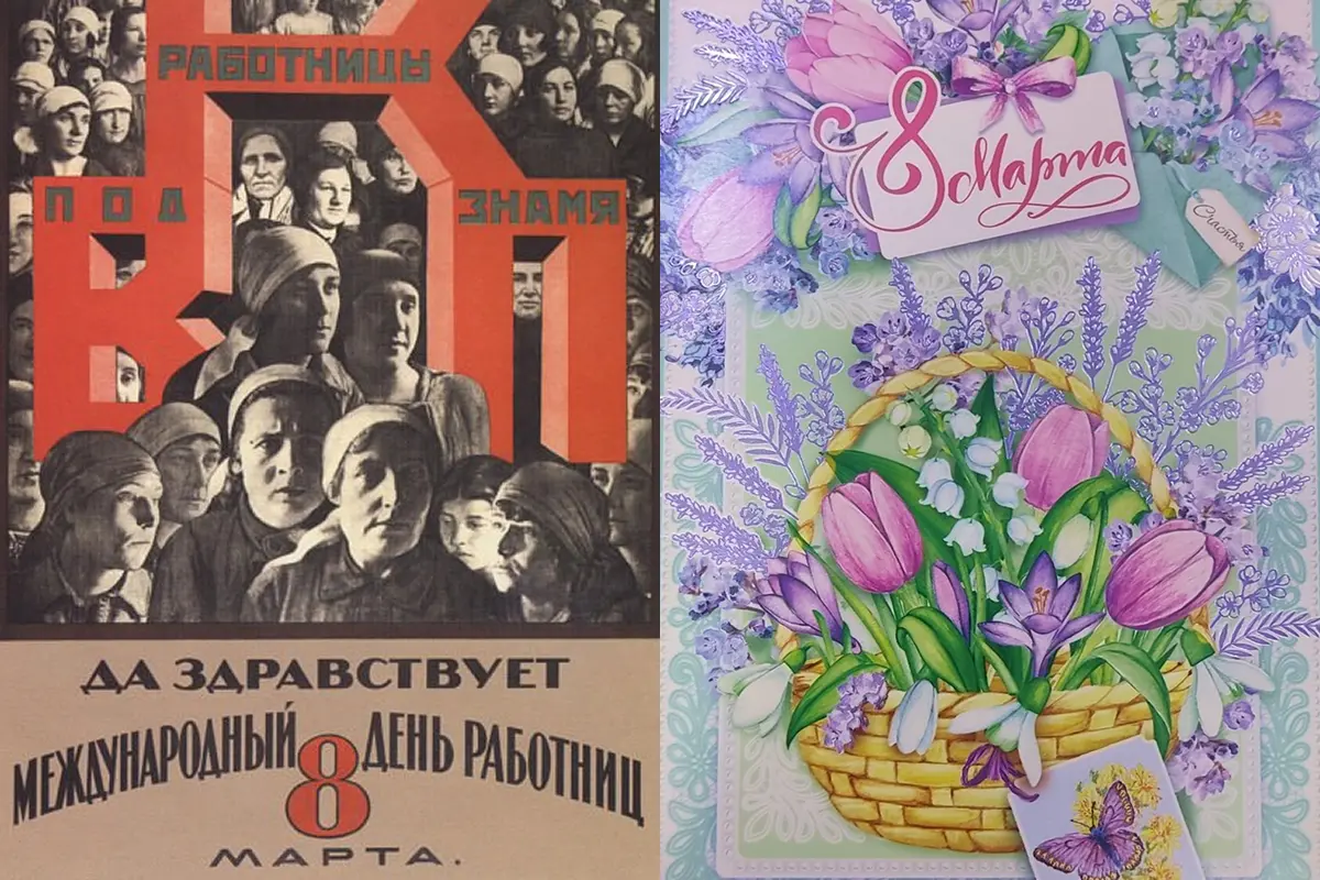 Яркие открытки с изображениями цветов, подарков и с красивыми поздравлениями ассоциируются у многих с Международным женским днём. Однако визуальный образ праздника не всегда был таким лёгким и весенним. В советское время к 8 Марта выпускались агитационные плакаты с призывами к труду и участию женщин в общественной жизни. «Газета» попыталась разобраться, как и почему менялся визуальный язык праздника.