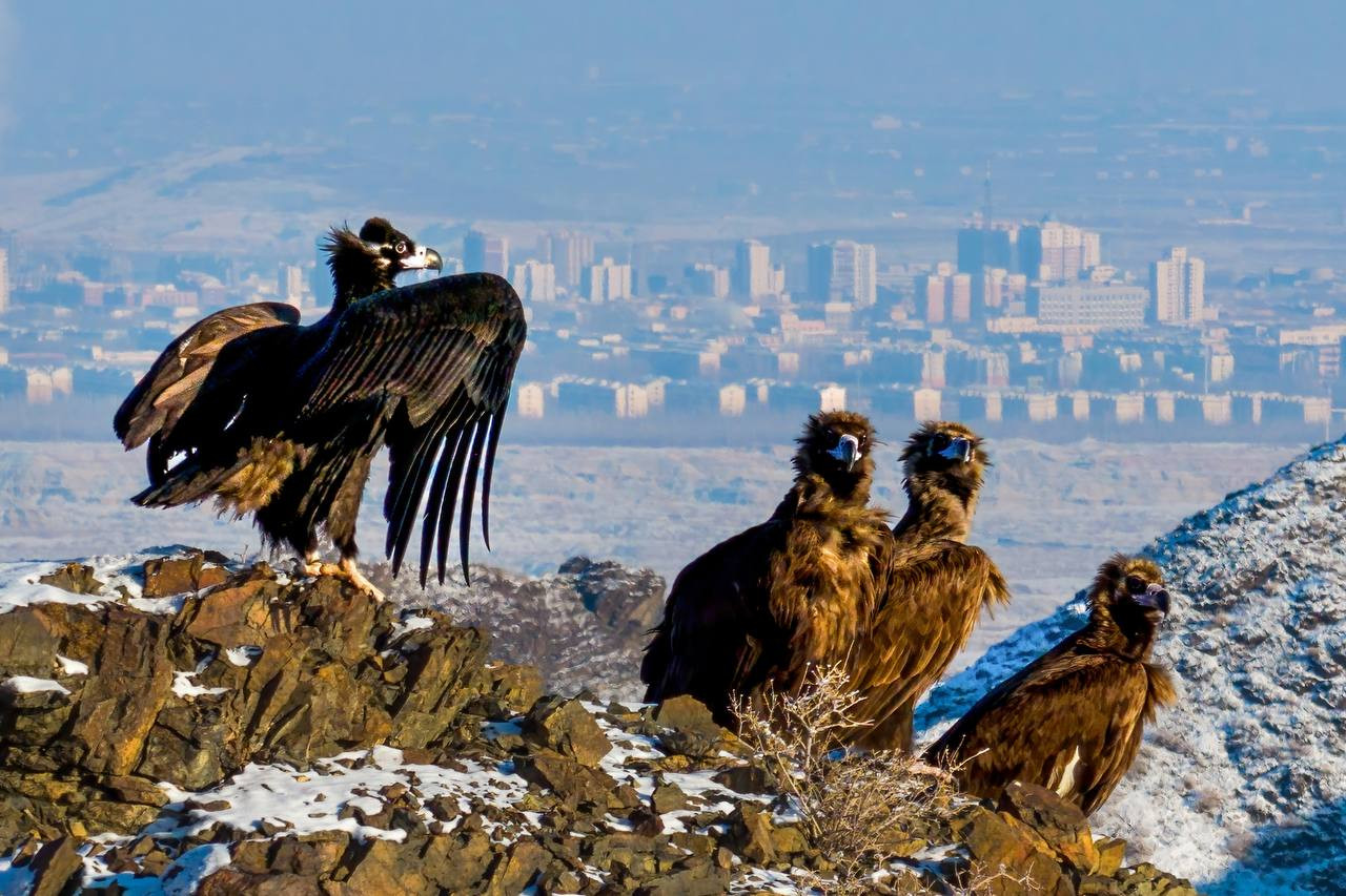 5 февраля в пригороде Карамая были замечены представители редкого хищника — чёрного сипа, относящегося к охраняемым видам высшей категории.
